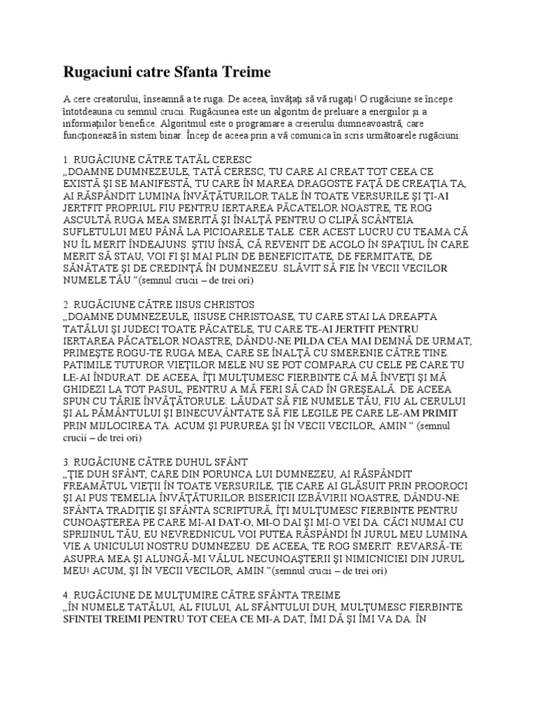 Rugaciuni Puternice Copii Si Adulti Indigo from www.copii-indigo.ro Acela care va citi acesta iisus hristos, fiul lui dumnezeu si sfanta treime porunceste ca putereaacestui talisman , sa o aiba. Citiți cu tot sufletul rugăciunea către sfânta treime, a cărei putere este imensă. Revarsa peste mine lumina binecuvantarii tale. Rugaciune care se rosteste in lunea sfantului duh. Război întru cuvânt » rugaciune catre sfanta treime. 0 evaluări0% au considerat acest document util (0 voturi). Altă rugăciune către sfânta treime: Saptamana de rugaciune pentru unitatea crestinilor.